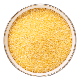 Corn Grits (4921) is milled from specially selected non-genetically modified corn. It is yellow to light orange in color and exists in the form of free flowing coarse grits. Corn Grits (4921) is highly recommended for the production of extruded snack products, as a thickening agent in sauces and in bakery applications.